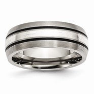 Titanium Grooved with Sterling Silver Inlay 8mm Brushed/Antiqued Wedding Band Ring