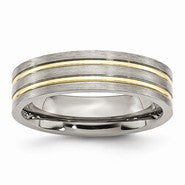 Titanium Grooved Yellow IP-plated 6mm Polished & Brushed Wedding Band Ring