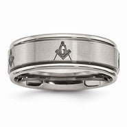 Titanium Ridged Edge 8mm Laser Design Polished & Brushed Wedding Band Ring
