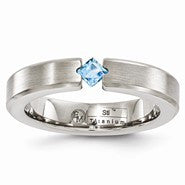 Titanium Satin Blue Topaz 4mm Wedding Band Ring