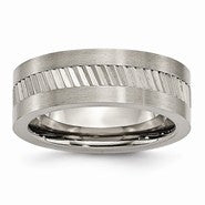Titanium Sawtooth Design Flat Polished with Brushed Edge 8mm Wedding Band Ring