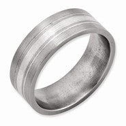 Titanium with Sterling Silver Inlay Flat 8mm Brushed Wedding Band Ring