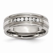 Titanium with Sterling Silver Inlay Polished Diamond Wedding Band Ring