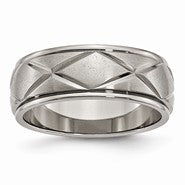 Titanium X-Design 8mm Satin Ridged Edge Wedding Band Ring