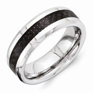 Vitalium Black Carbon Fiber 8mm Beveled Edge Polished Wedding Band Ring