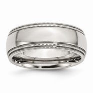 Protected by our 30 Day Money Back Guarantee!Width:8 mmThickness:2 mmRidged edgeGrain finish centerPolished FinishJewelry Rings for womens