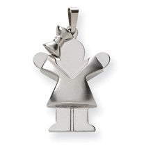 14k White Gold Puffed Girl w/Bow on Left Engravable Charm hide-image