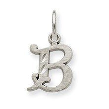 Diamond-cut Initial B Charm in 14k White Gold