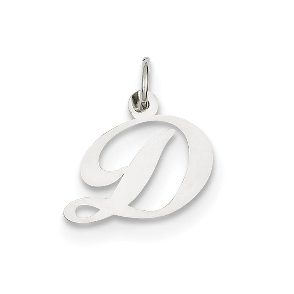 14k White Gold Small Fancy Script Initial D Charm hide-image