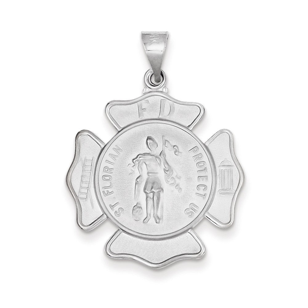 14k White Gold Polished and Satin St. Florian Badge Medal Pendant Charm hide-image
