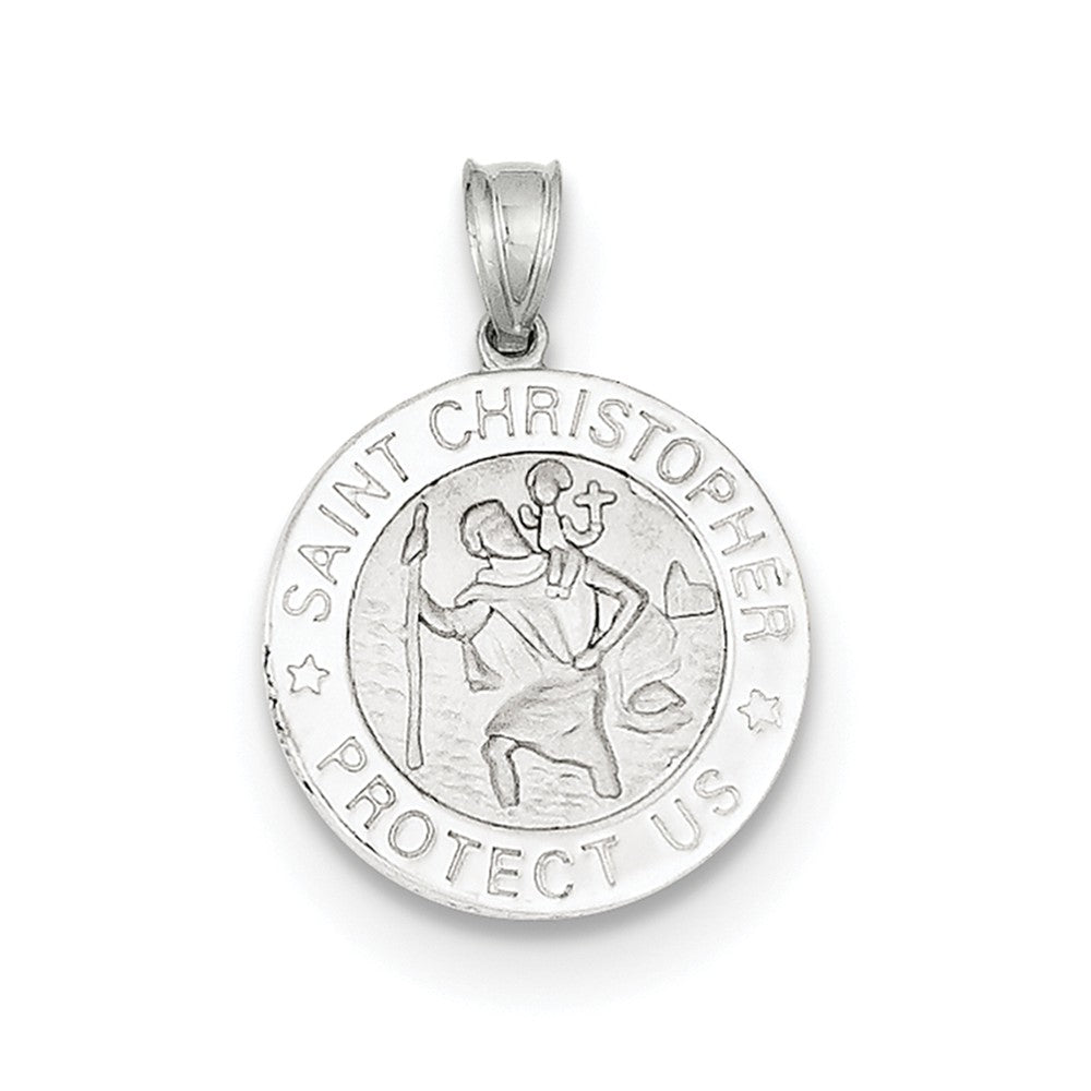 Travel in faith with this white gold Saint Christopen medal charm! This will make a great addition to any charm collection!