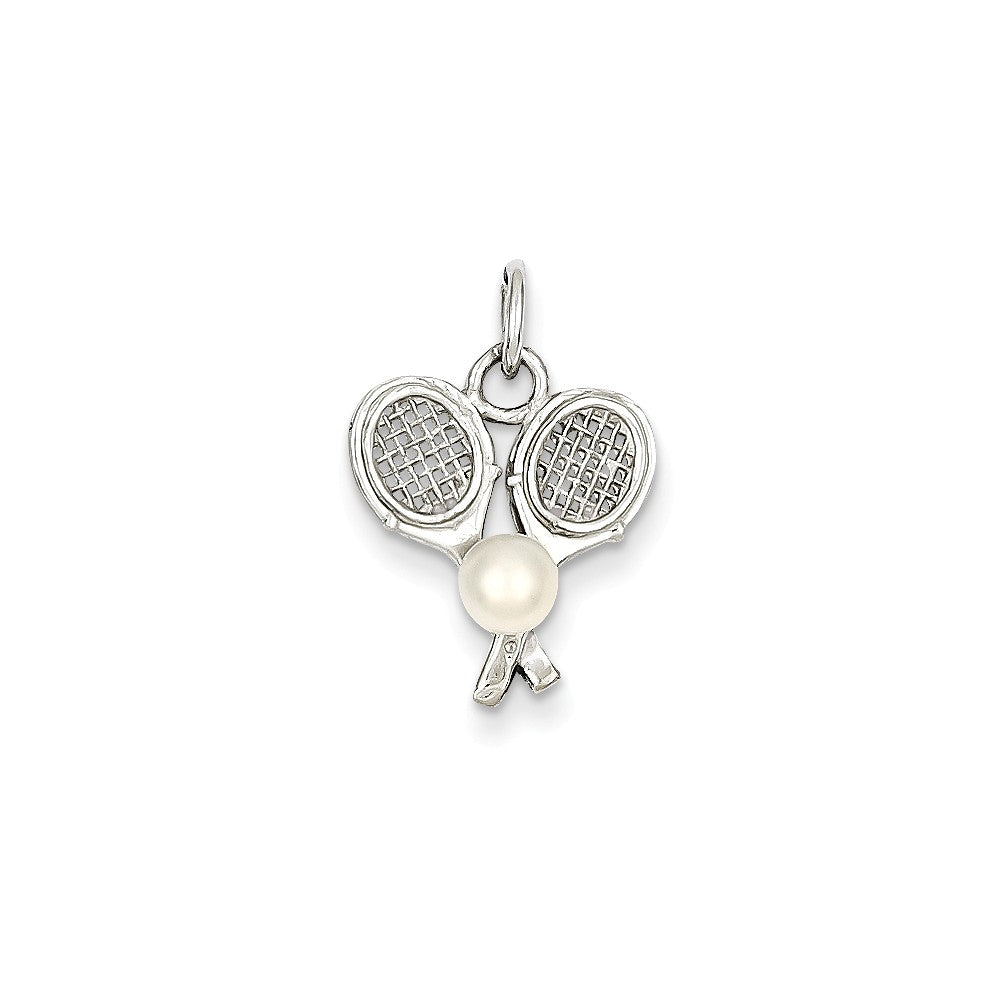 Tennis Racquets with Cultured Charm in 14k White Gold