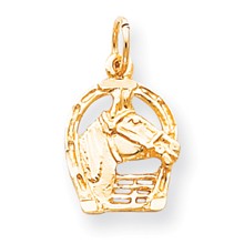 10k Yellow Gold Solid Diamond-cut Horsehead in Horseshoe Charm hide-image