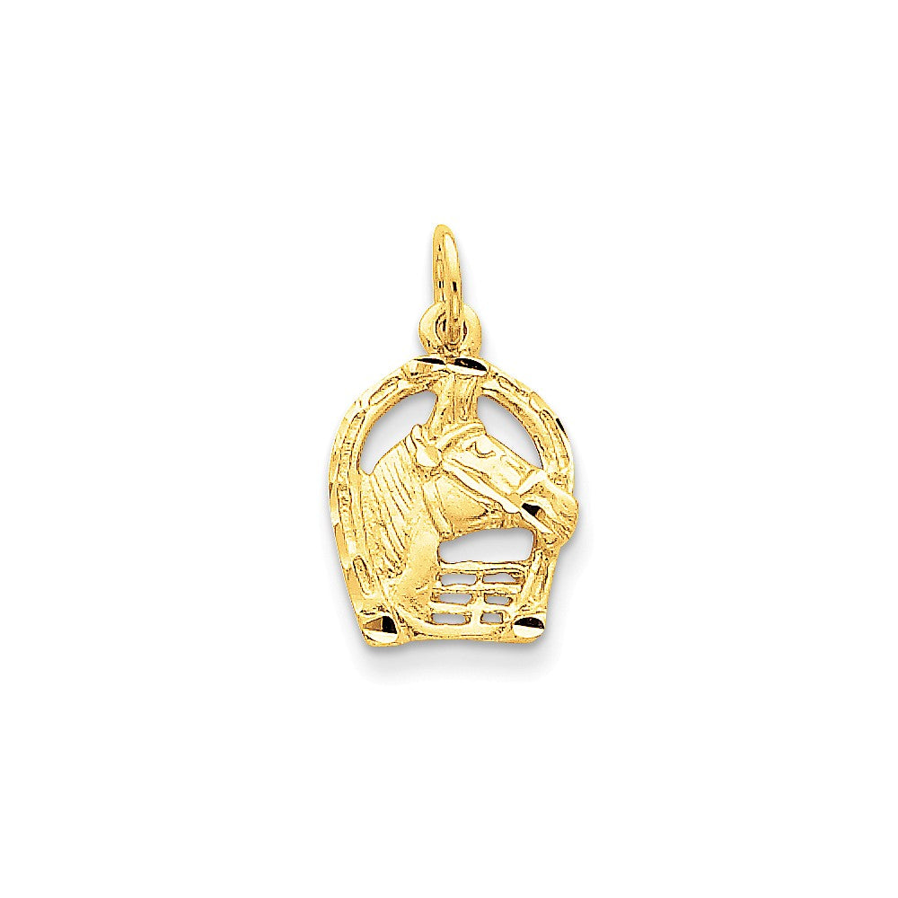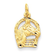 Diamond-cut Horse Head in Horseshoe Charm in 14k Yellow Gold