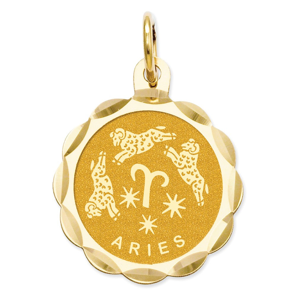 If Aries is your astrological sign, then this charm is for you! Check out the Yellow Gold Satin Polished Engraveable Aries Zodiac Scalloped Disc Charm! This is a fantastic charm for all jewelry charm lovers!