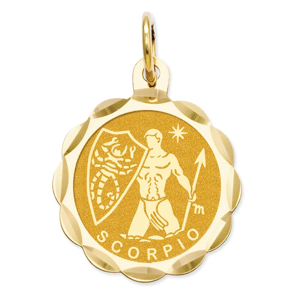 14k Gold Satin Polished Engravable Scorpio Zodiac Scalloped Disc Charm hide-image