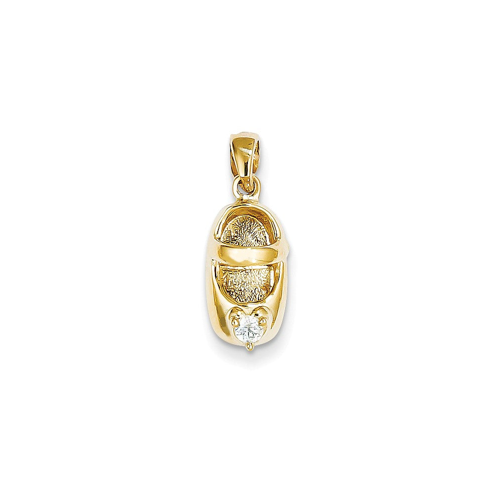14k Gold 3-D April/White Zircon Engraveable Baby Shoe Charm hide-image