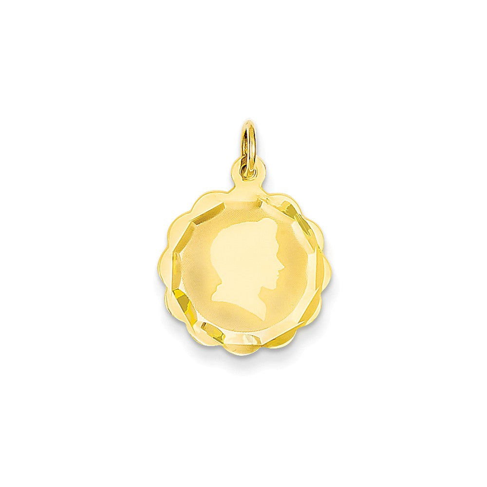 Boy Head on .009 Gauge Engravable Scalloped Disc Charm in 14k Gold