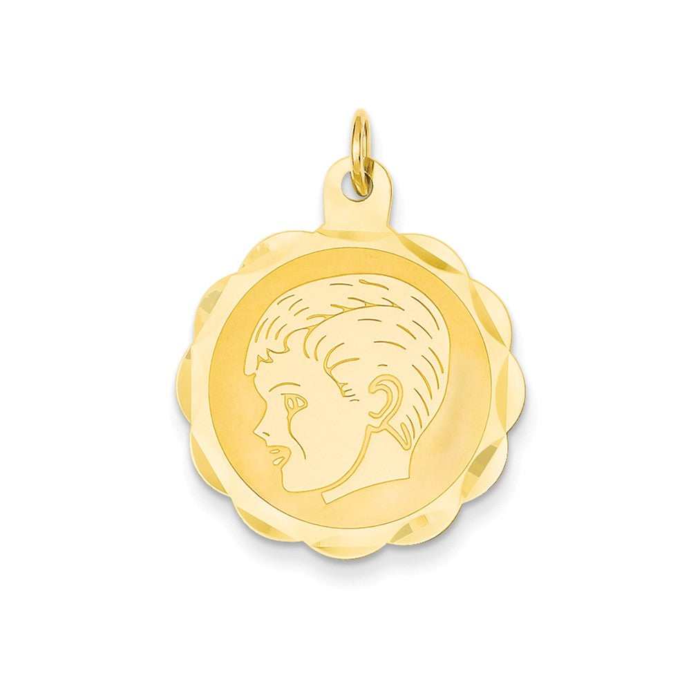 Boy Head on .011 Gauge Engravable Scalloped Disc Charm in 14k Gold