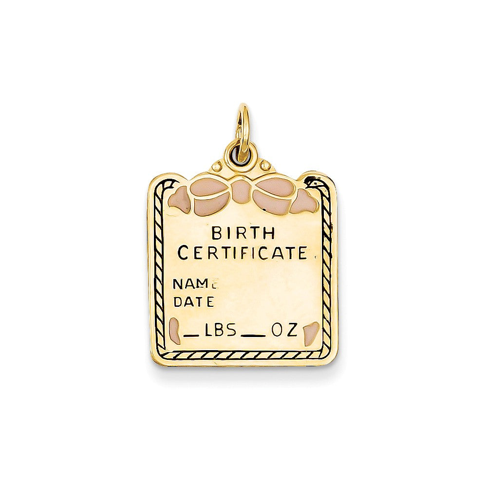 Enameled Pink Engravable Birth Certificate Charm in 14k Gold