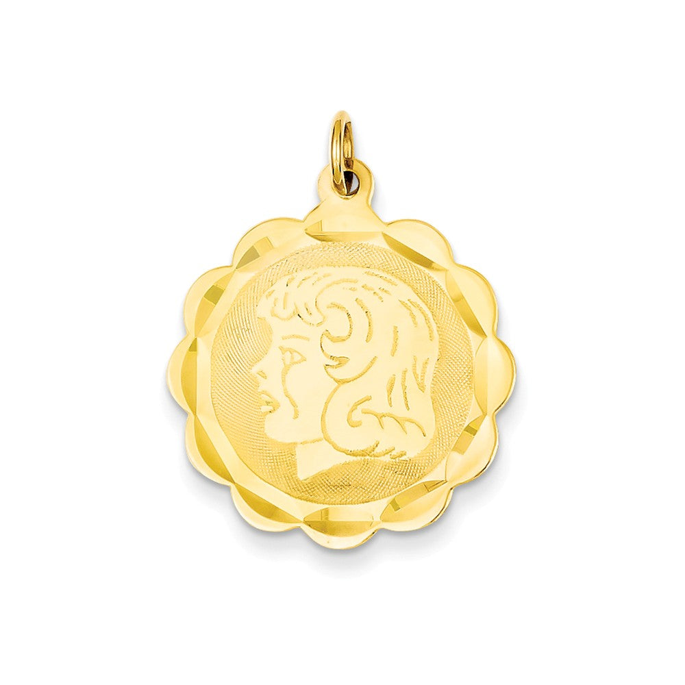 Girl Head on .011 Gauge Engravable Scalloped Disc Charm in 14k Gold
