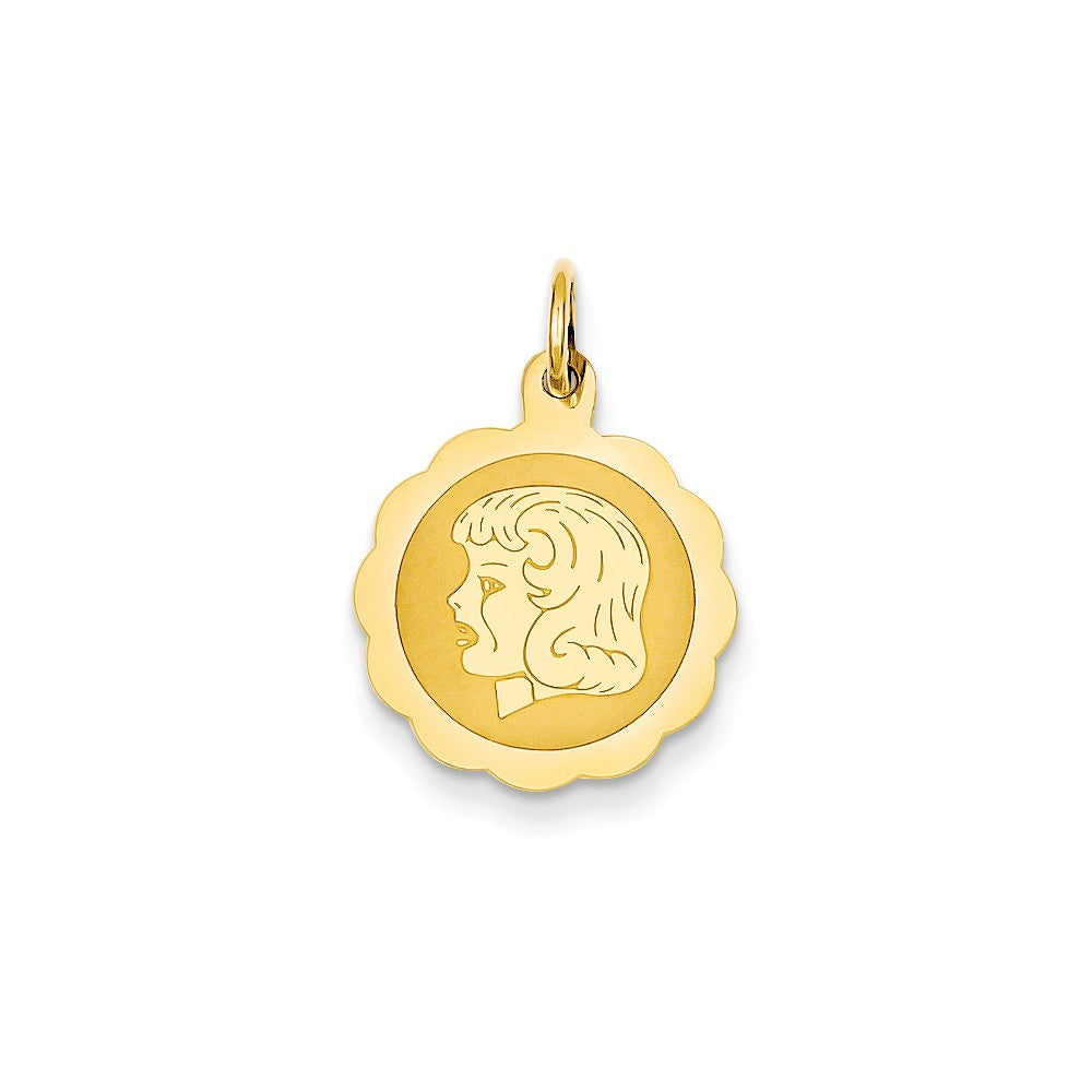 Girl Head on .013 Gauge Engravable Scalloped Disc Charm in 14k Gold