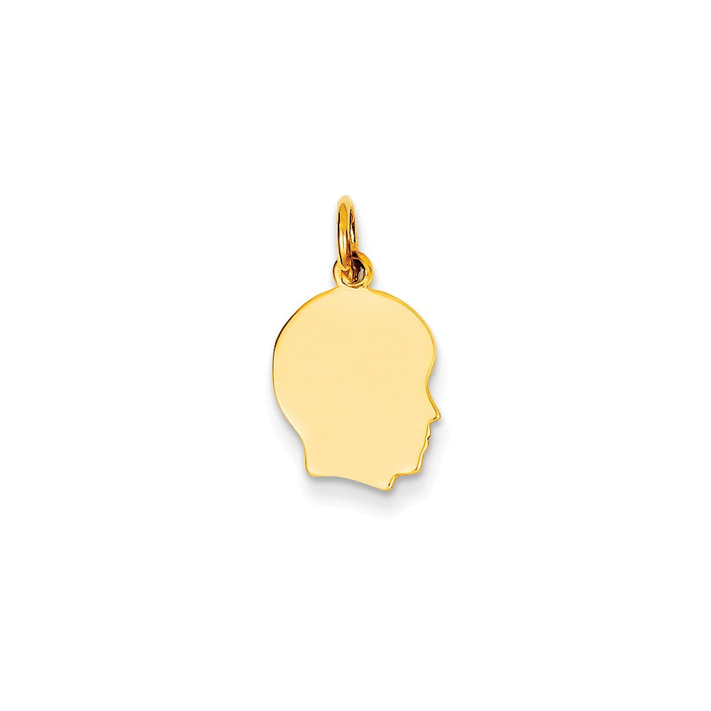 14k Gold Plain Small .027 Gauge Facing Right Engravable Boy Head Charm hide-image