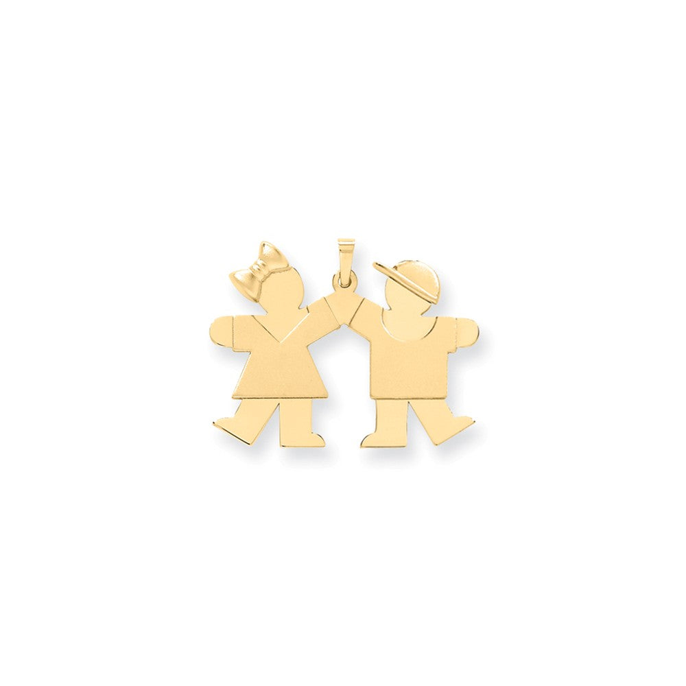 Solid Engravable Girl on Left & Boy on Right Charm in 14k Gold