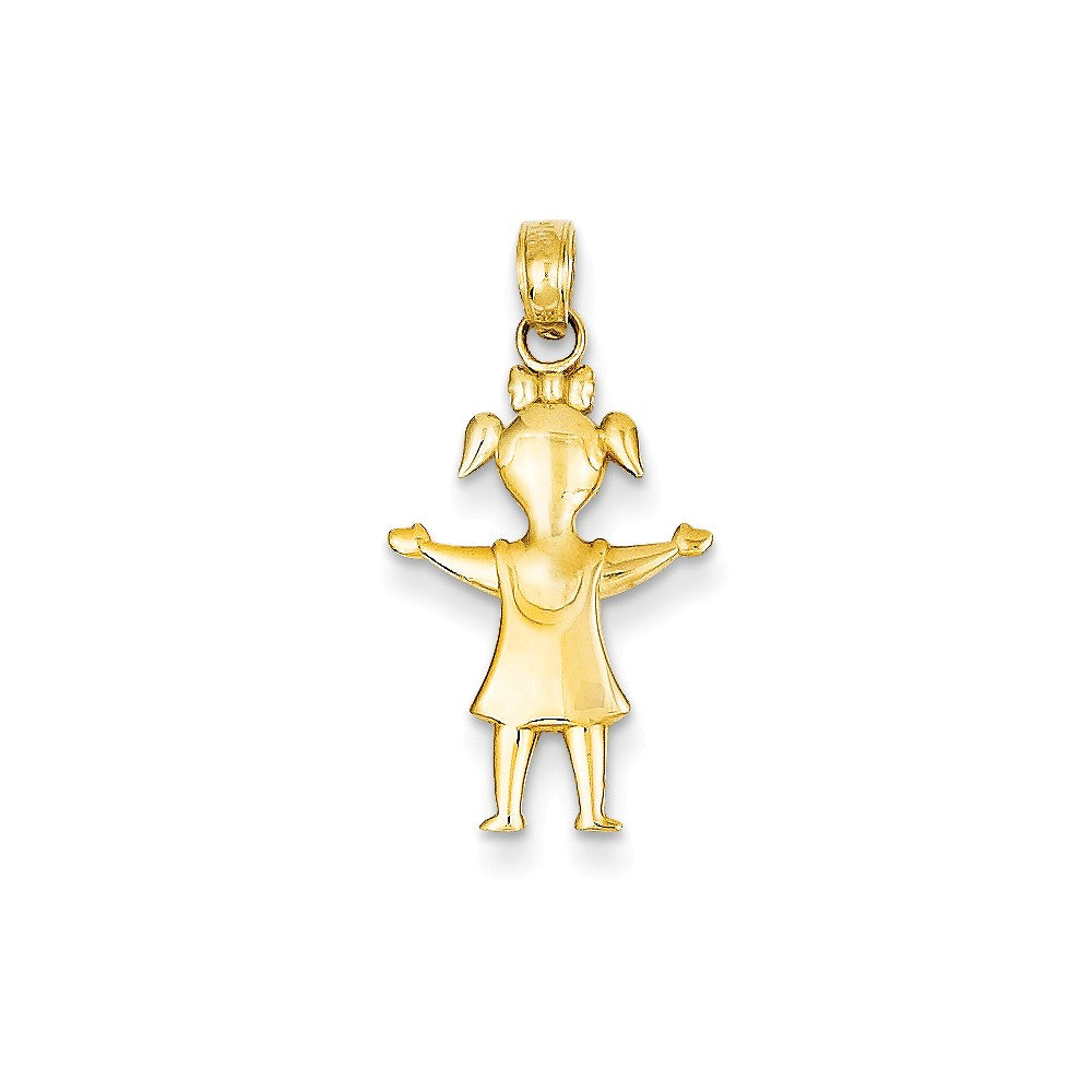 Solid Polished Girl with Pig-Tails Charm in 14k Gold
