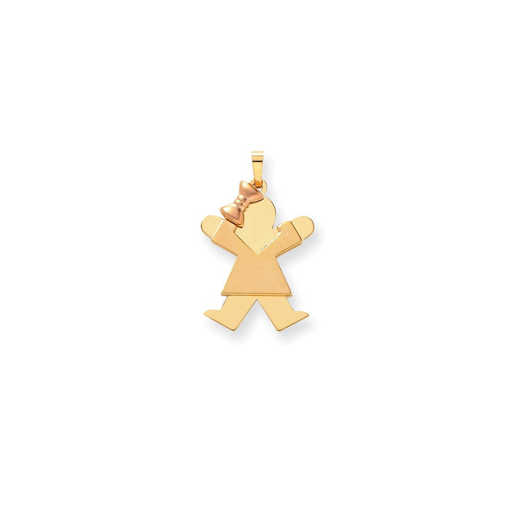 Large Girl with Bow on Left Engravable Charm in 14k Gold Two-tone
