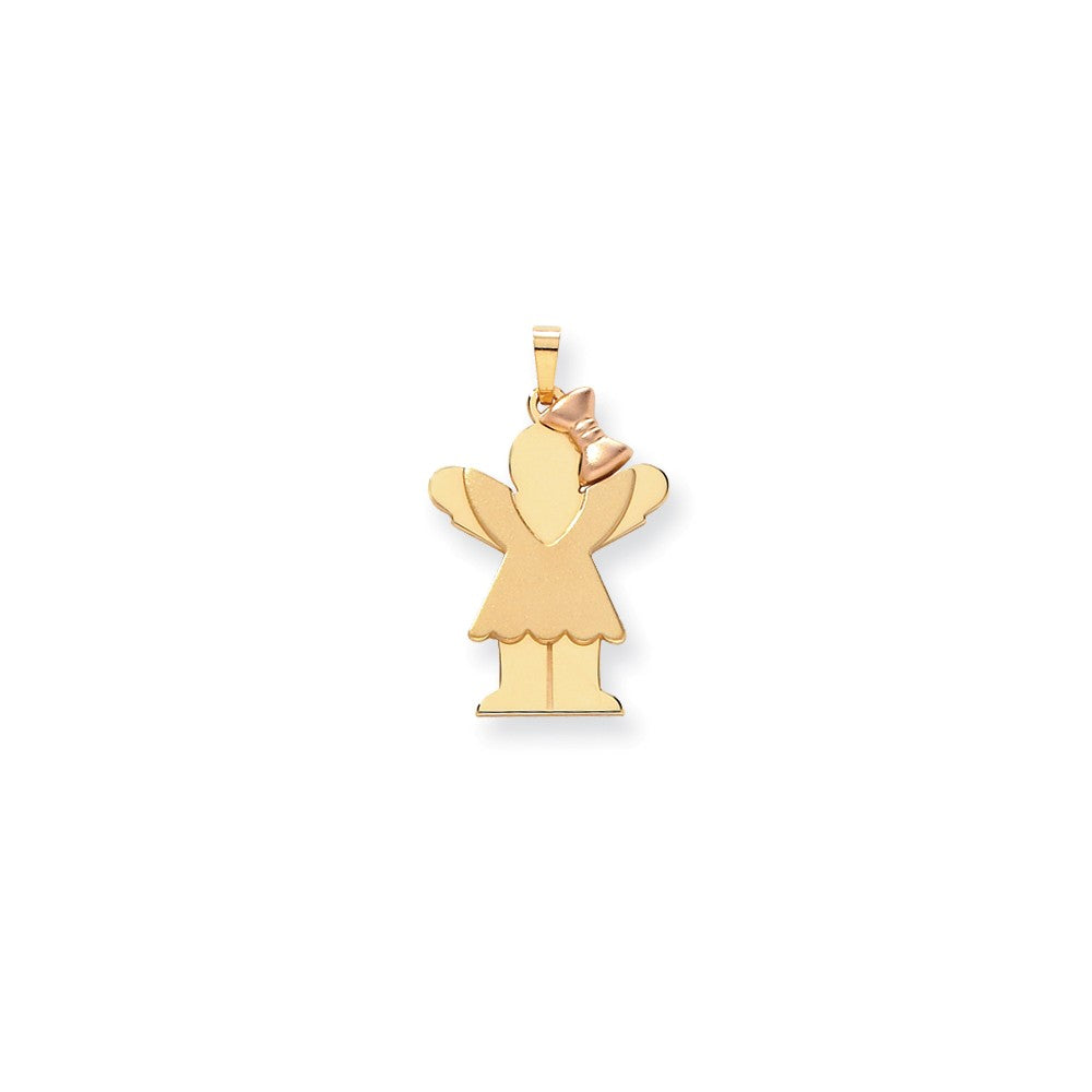 Large Girl with Bow on Right Engravable Charm in 14k Gold Two-tone