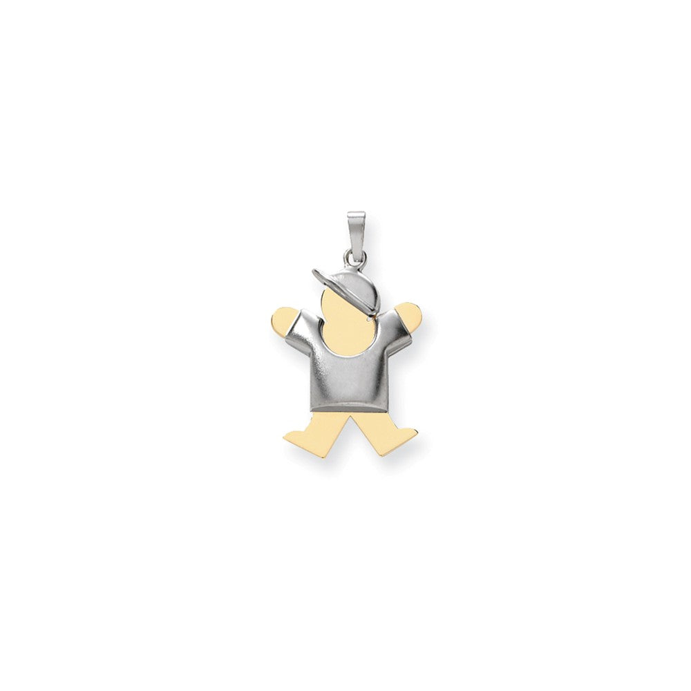 14k Gold Two-Tone Puffed Boy with Hat on Right Engravable Charm hide-image