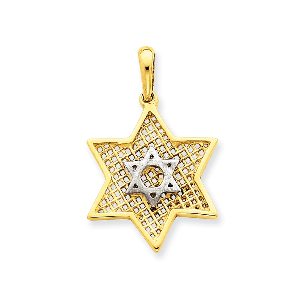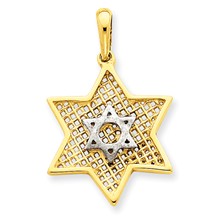 14k Gold & Rhodium Solid Polished Meshed Star of David Charm hide-image