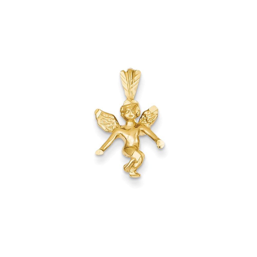 Satin & Diamond-cut Angel Charm in 14k Gold