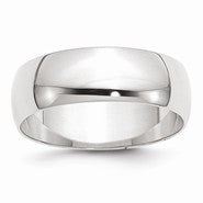 10k White Gold 7mm Lightweight Half Round Wedding Band Ring
