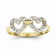 10k Yellow Gold Double Heart CZ Ring
