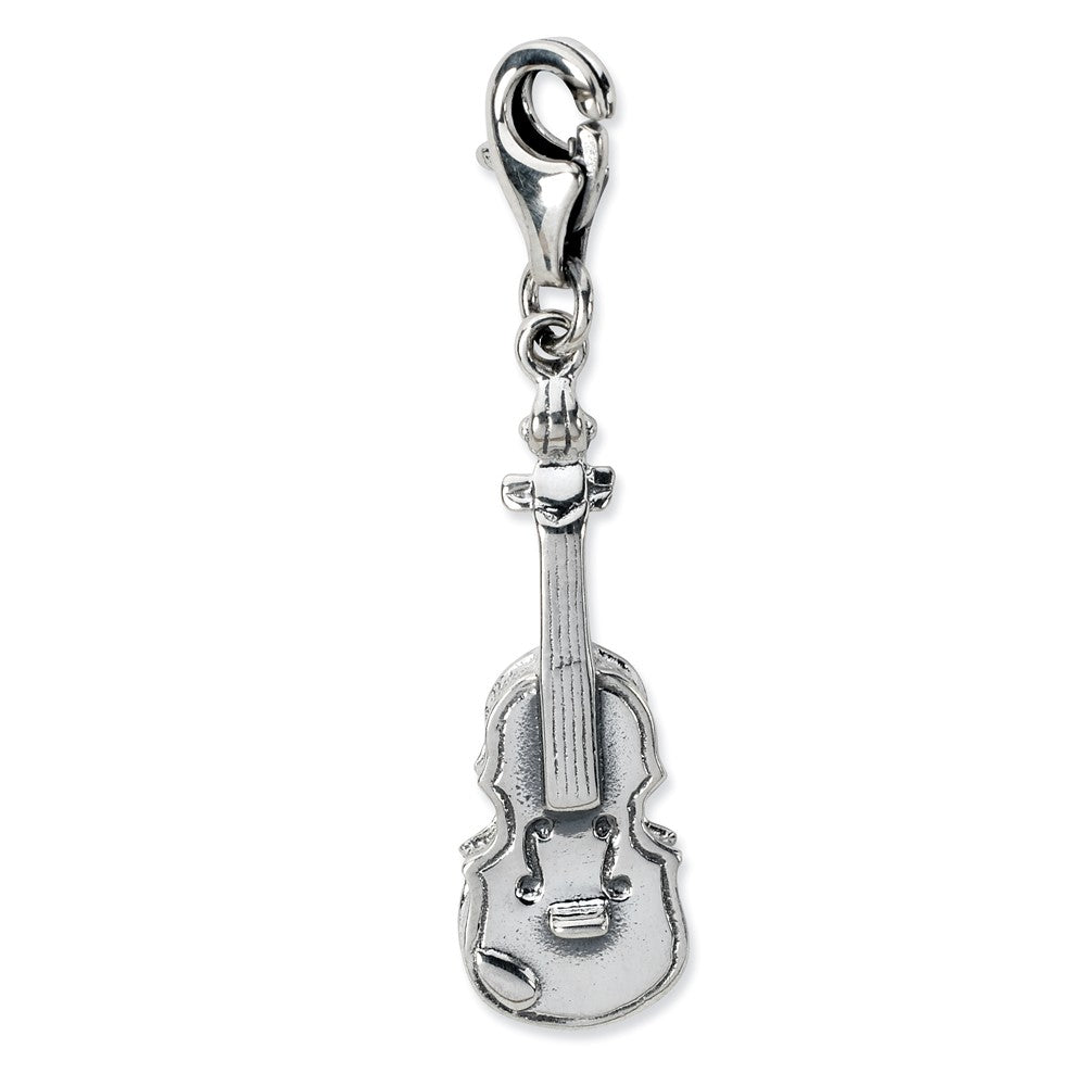 3-D Antiqued Violin Charm in Sterling Silver