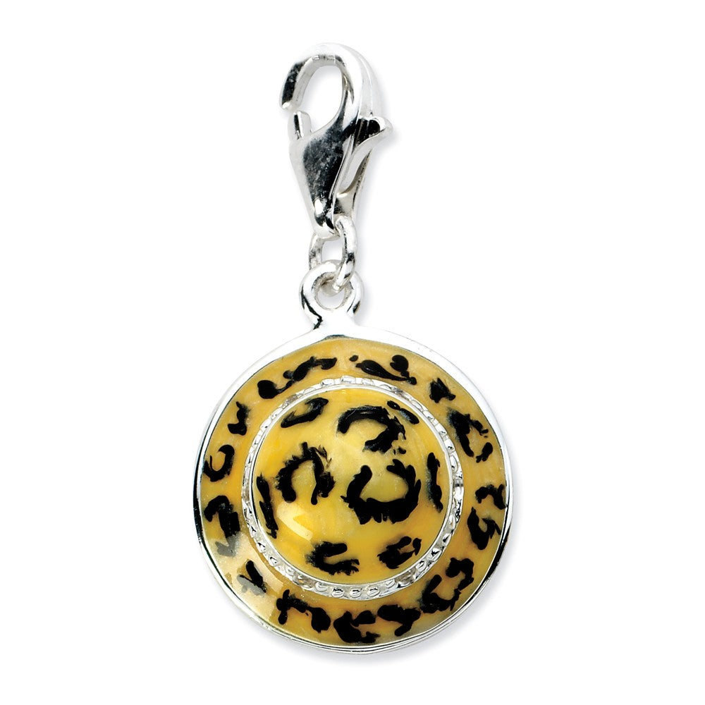 Click-on CZ Enamel Leopard Hat Charm in Sterling Silver