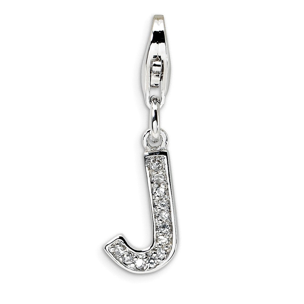 CZ Letter J Charm in Sterling Silver
