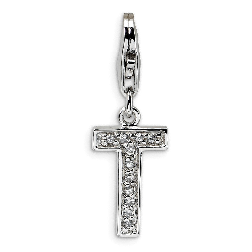 CZ Letter T Charm in Sterling Silver