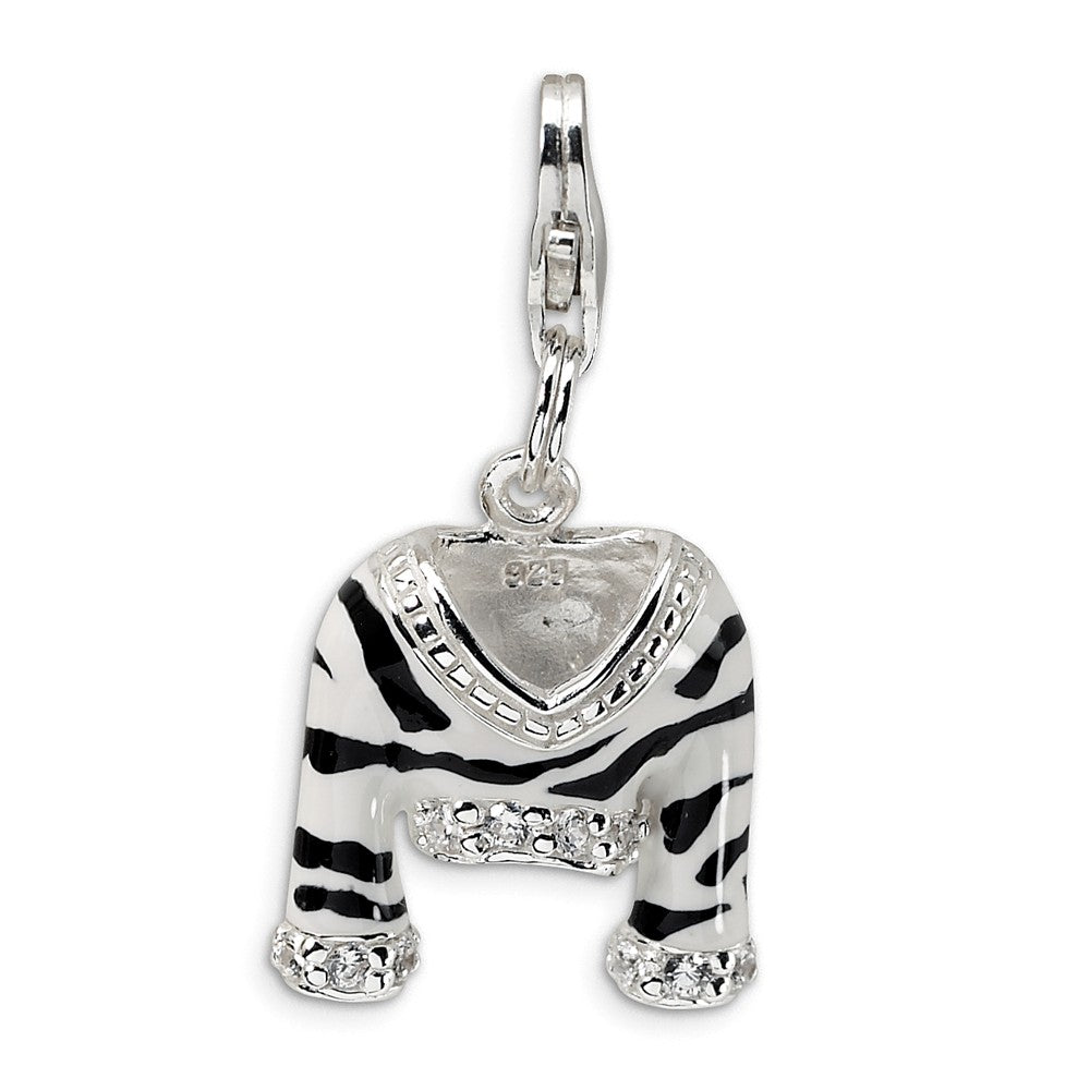 CZ Polished Enamel Zebra Jacket Charm in Sterling Silver