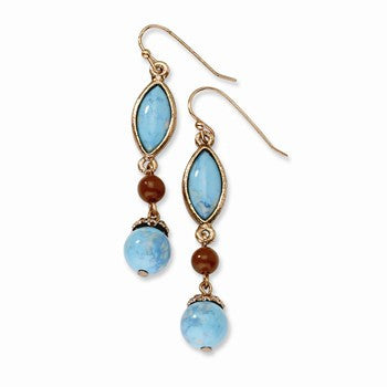 Copper-tone Aqua Brown Acrylic Beads Dangle Earrings