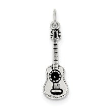 Antiqued Acoustic Guitar Charm in Sterling Silver