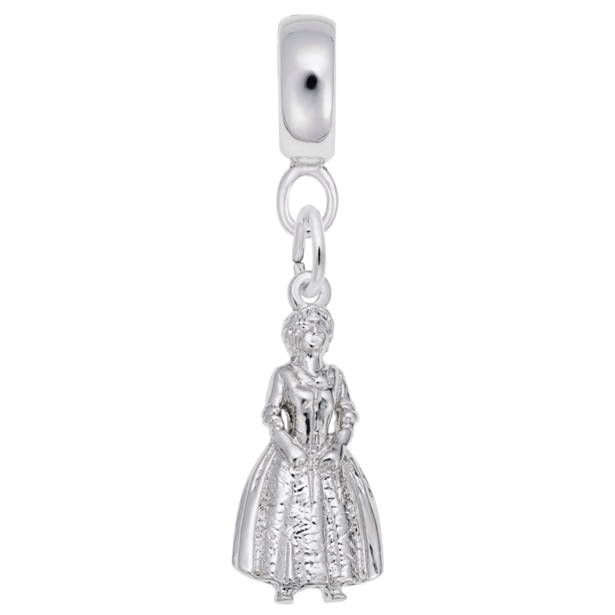 Colonial Woman Charm Dangle Bead In Sterling Silver