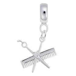 Comb And Scissors Charm Dangle Bead In Sterling Silver