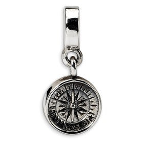 Sterling Silver Compass Dangle Bead Charm hide-image