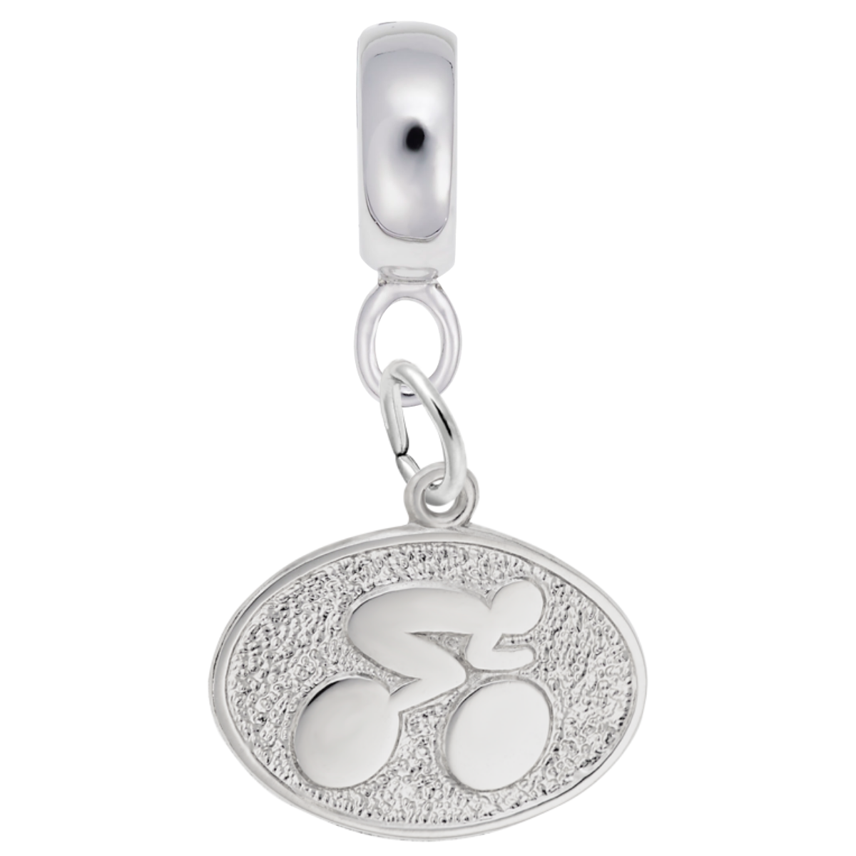 Show your love for riding on two wheels! This Sterling Silver engravable cyclist charm dangle bead is great for the avid cyclist! Add it to a collection now!
