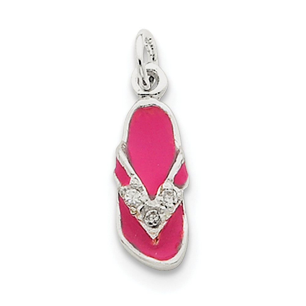 Sterling Silver CZ and Pink Enameled Flip Flop Charm hide-image