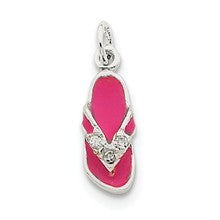 CZ and Pink Enameled Flip Flop Charm in Sterling Silver