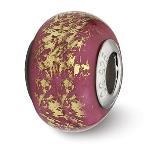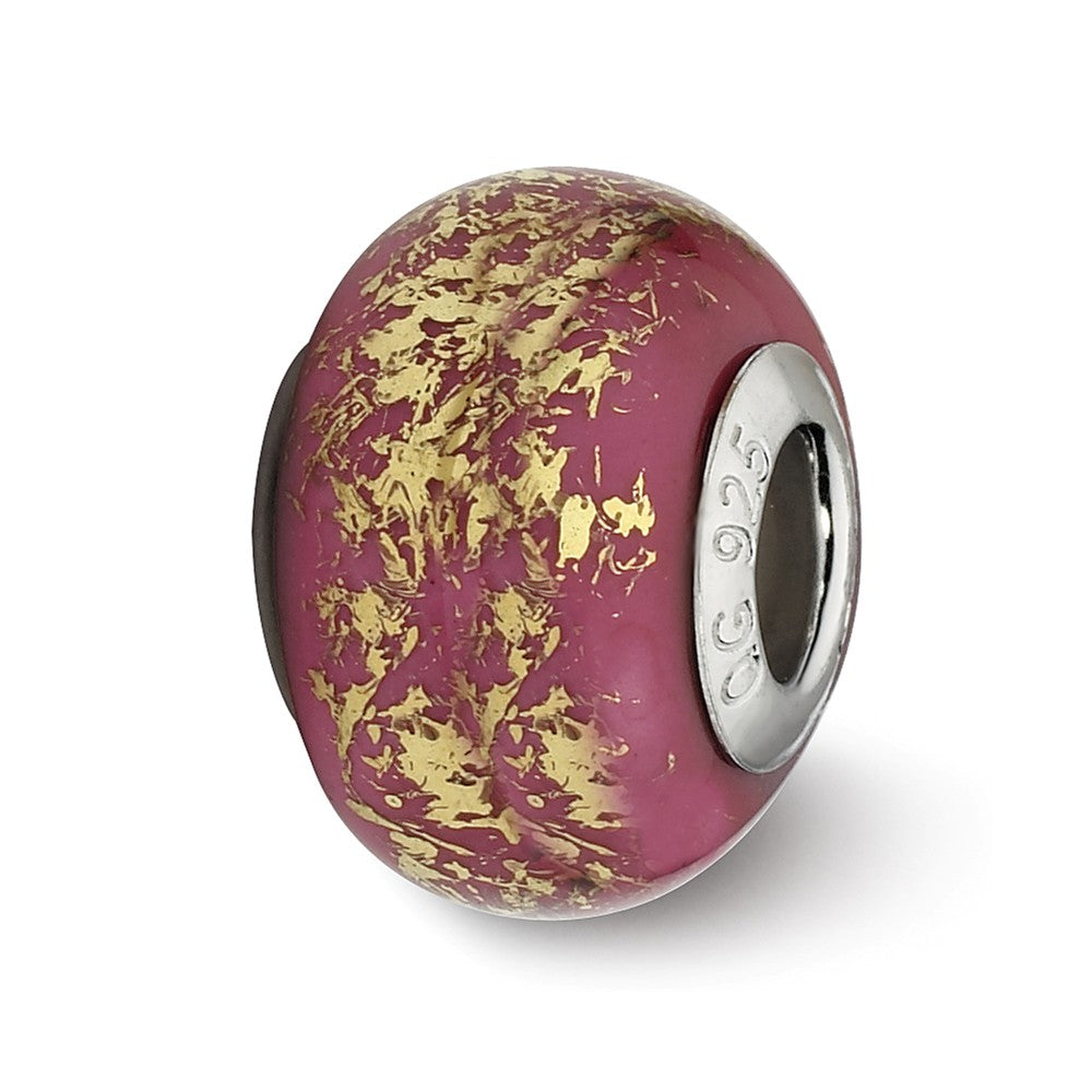 Dark Pink w/Gold Foil Ceramic Charm Bead in Sterling Silver